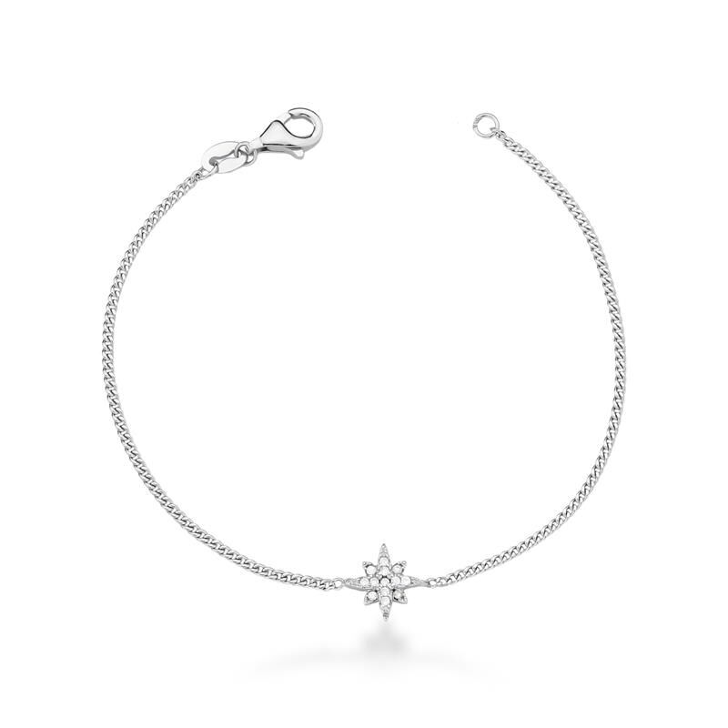 Luce un detalle lleno de brillo con esta pulsera de plata 925 rodiada talla 16, con un delicado colgante de estrella engastado que aporta un toque especial y elegante a tu muñeca.